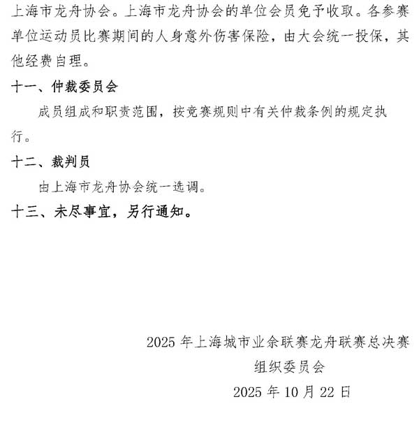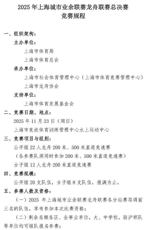 2025年上海城市业余联赛龙舟联赛总决赛竞赛规程